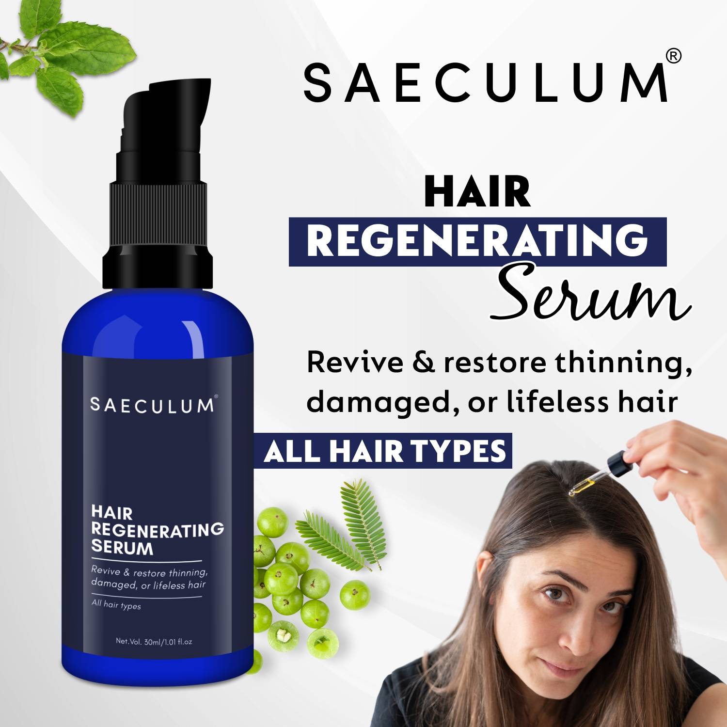 Reclaim your confidence with SAECULUM Hair Regenerating Serum – because every strand matters.
